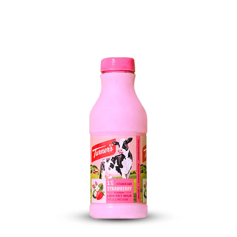 Turner’s 1% lowfat strawberry milk produced with milk from local, family farms