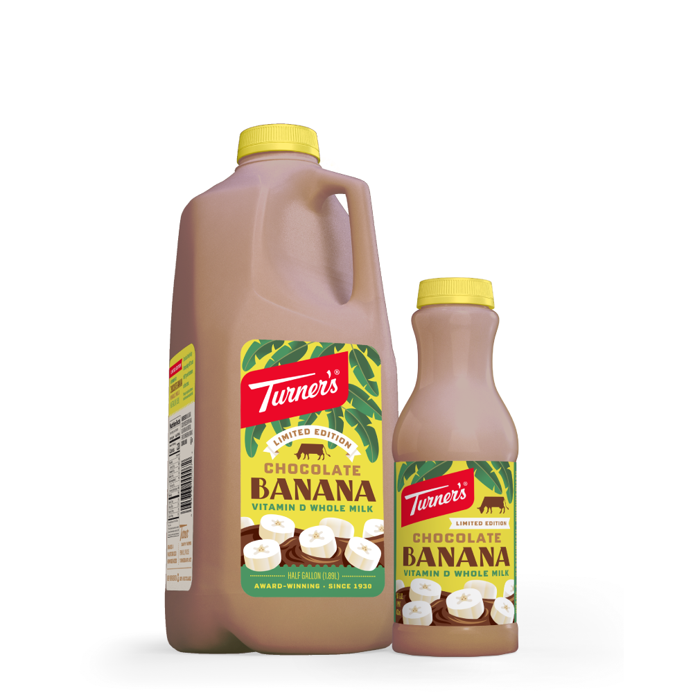 Go bananas for Chocolate Banana Milk! Available for a limited time in pints and half gallons where Turner’s is sold.